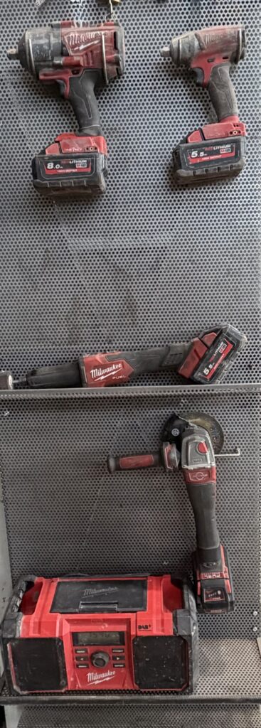 Ich setze fast nur auf Milwaukee High Output, und zwar in dieser Kombination, weil sie für mich den besten Mix aus Gewicht und Leistung bietet: